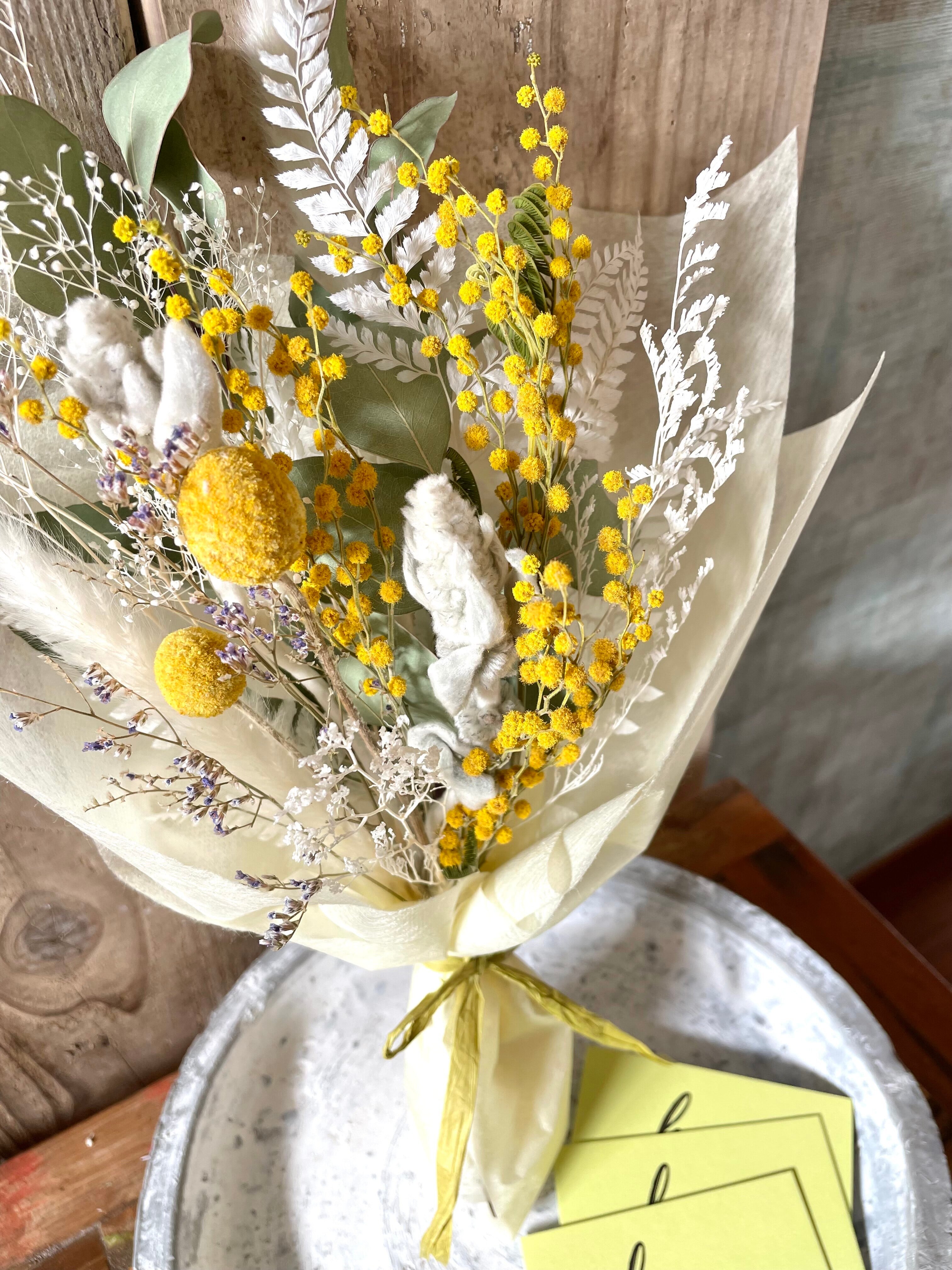 そばにあるだけで元気の出るミモザのアレンジ。ご自宅やお店の装飾はもちろん、感謝を伝えたいあの人へギフトにいかがでしょうか♪