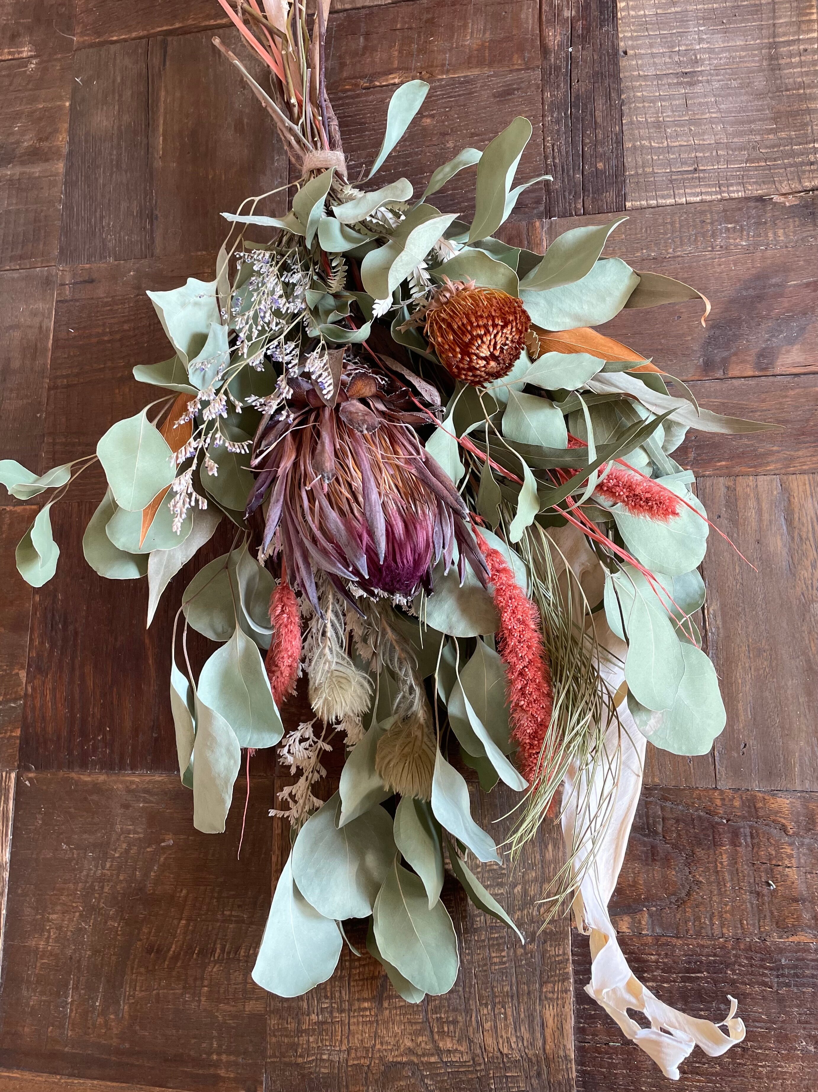 【sold】プロテア カーニバルのネイチャーなスワッグ【一点もの】