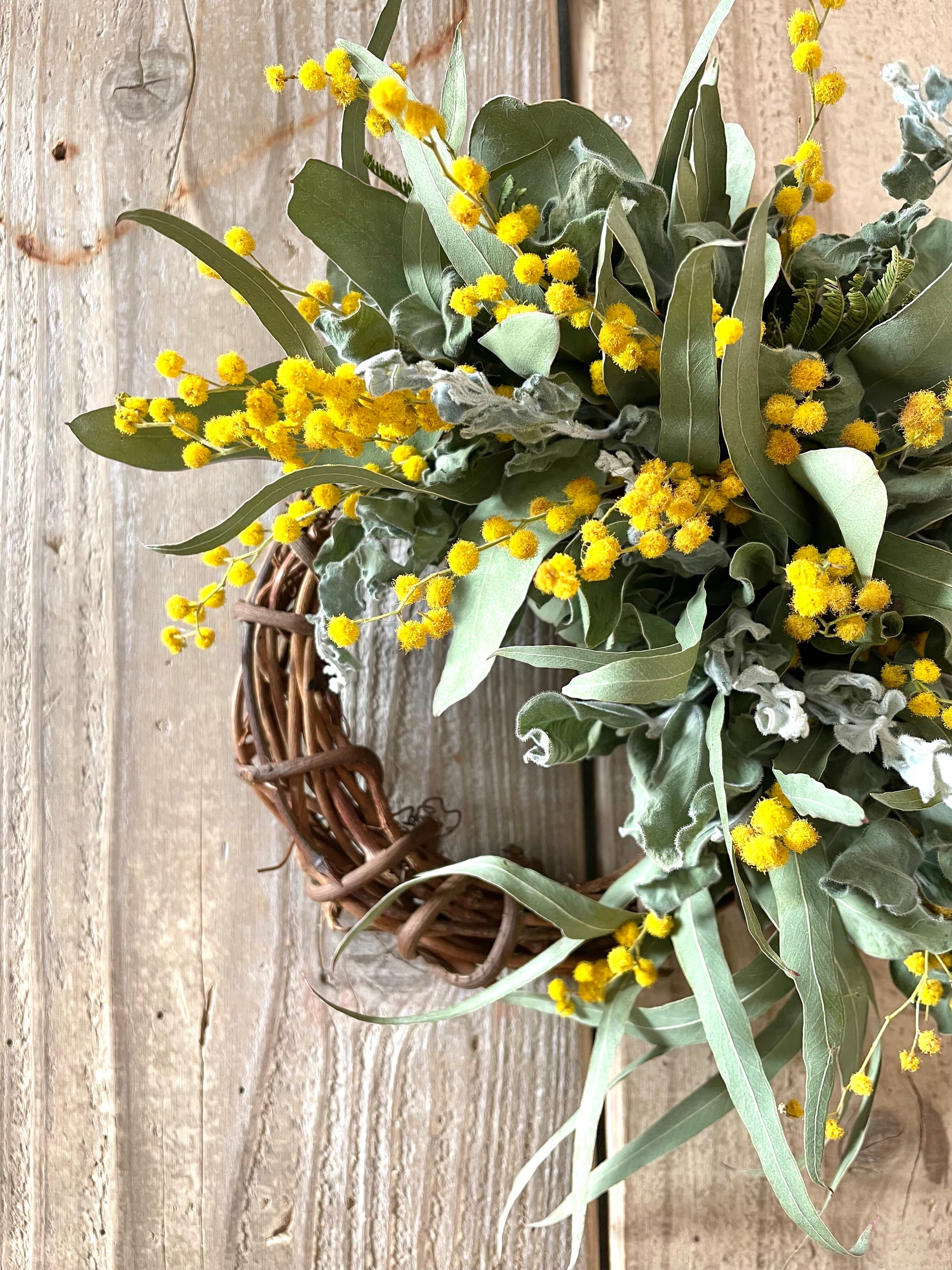 【セミオーダー】ミモザとユーカリのフルリース/ドライフラワー/フラワーギフト
