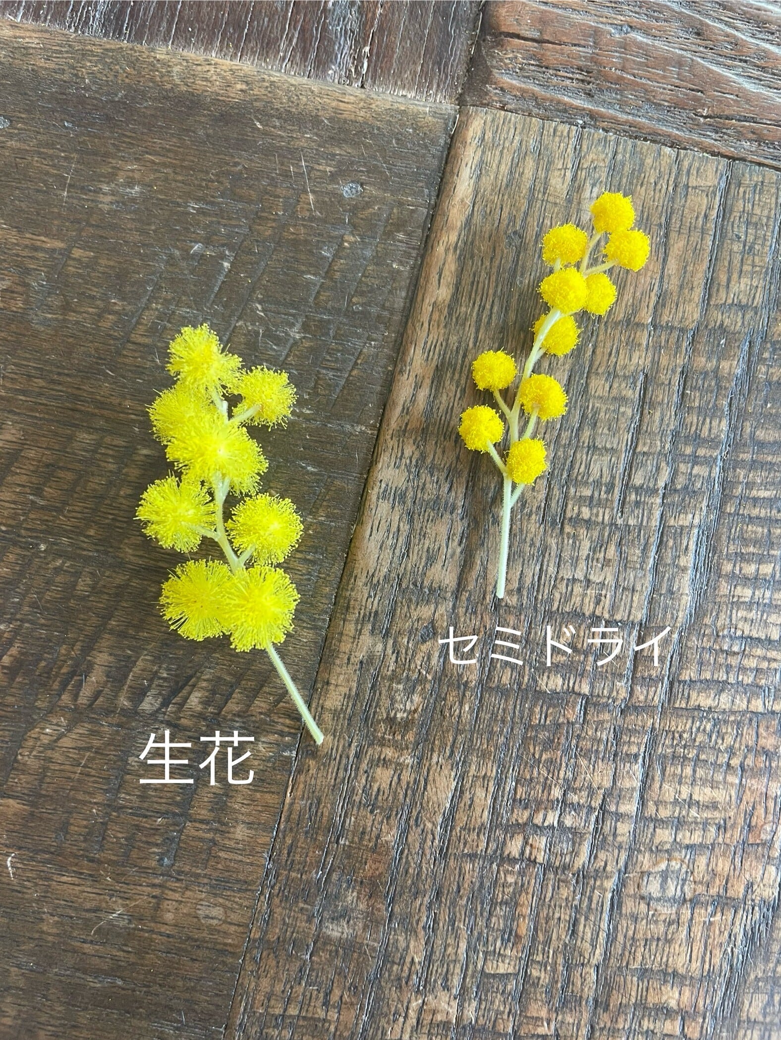 ミモザが入荷次第フレッシュ(生花)の状態でお作りし、セミドライ又はドライでお届けいたします。